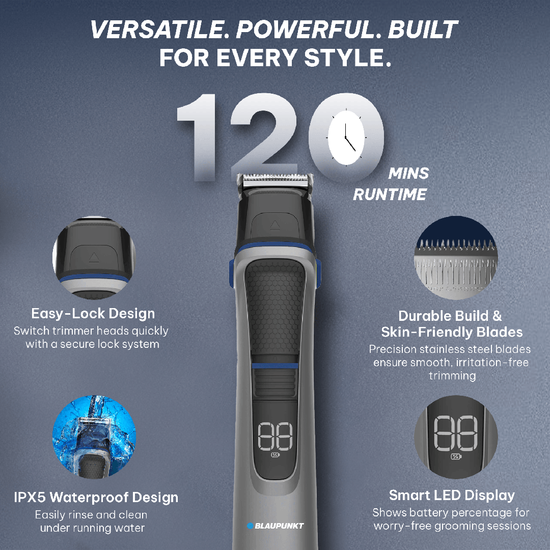 The LCD display clearly shows battery life and charging status, ensuring you never run out of power mid-trim. Built with durable materials and washable attachments, this IPX-rated grooming kit is perfect for wet or dry use. Trusted for quality, Blaupunkt backs this product with a 2-year warranty for worry-free grooming.