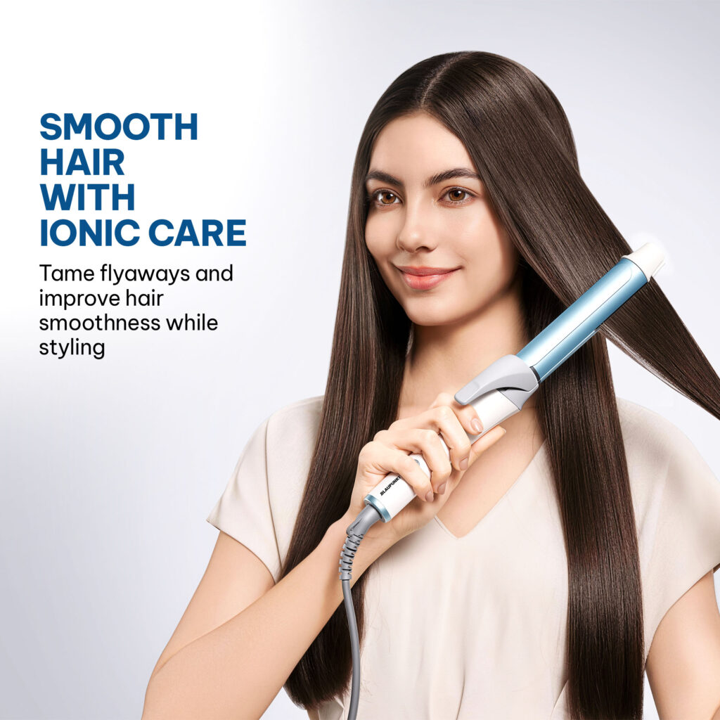 Built-in ionic technology helps reduce frizz while enhancing smoothness and shine during styling.