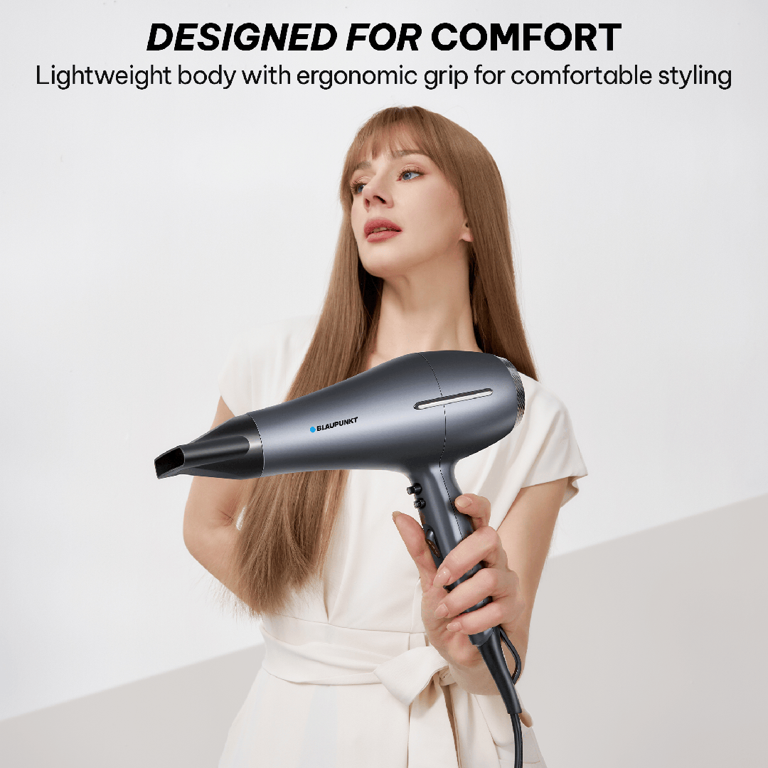 Negative ion function reduces static electricity and flyaways, delivering soft, silky, and manageable hair. Ideal for everyday use while maintaining hair’s natural moisture balance.