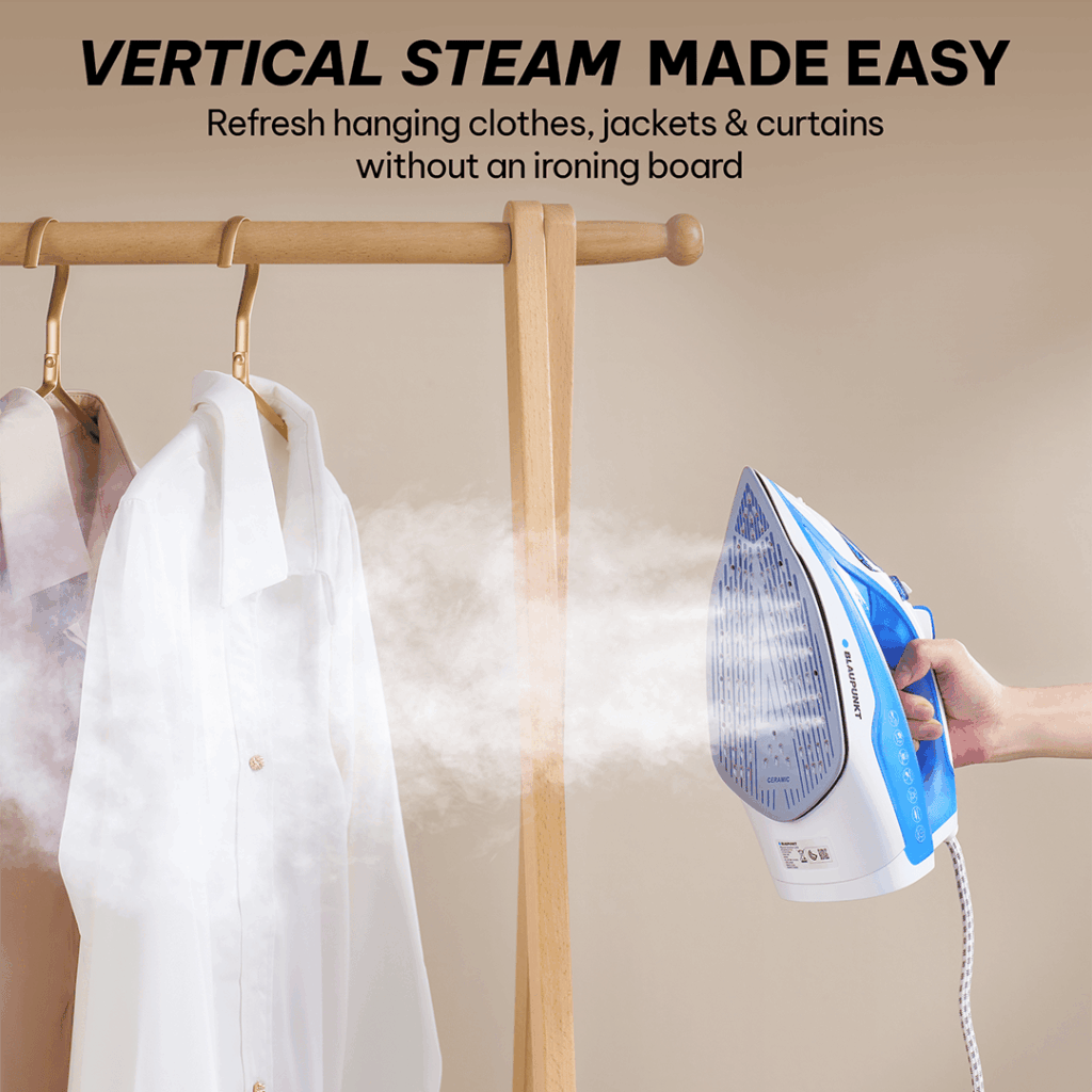 Provides 20–35g/min continuous steam, vertical steaming for hanging clothes, and steam burst feature to tackle stubborn wrinkles on thick fabrics with ease and efficiency.